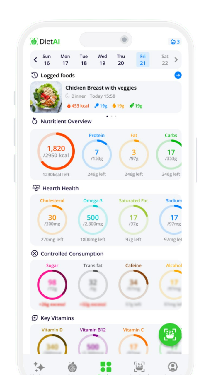 Prendi il controllo dei tuoi livelli di zucchero nel sangue con DietAI, un'app intelligente per l'analisi dei nutrienti e la pianificazione dei pasti.